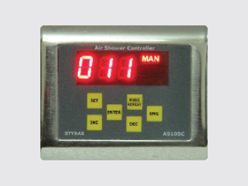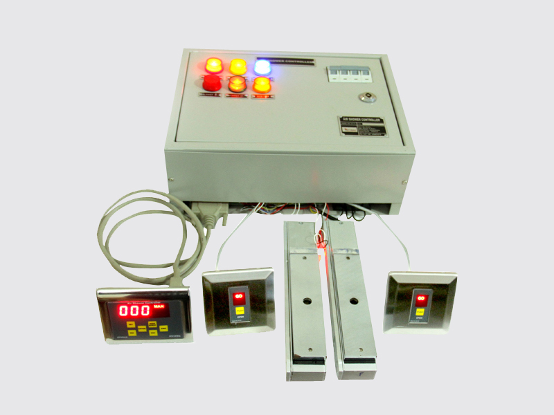 The Air Shower system controls the sequential locking and release of the doors, and controls the Blower. The two doors are interlocked such that two doors cannot be open at the same time, to prevent pressure losses and cross contamination.