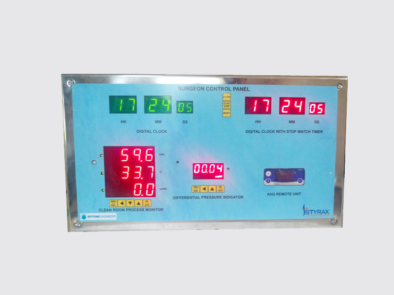 The “STYRAX” Surgeon Control Panels (SCP), sometimes called Theatre Control Panels (TCP) or Operating Room Control Panels,are the central focus for infrastructure controls as well as alarms and information required in an Operating Room. This focus has two main benefits; it allows the users to only have one familiar source of information and lets the facilities staff easily inspect and maintain several different subsystems, without disrupting the wall infection integrity.